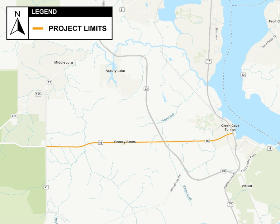 The Florida Department of Transportation is scheduled to resurface State Road 16 from State Road 21 to U.S. 17 (State Road 15) in Clay County. Improvements include milling and resurfacing, base work, shoulder and driveway treatment, drainage improvements and utility adjustments, curb and gutters, sidewalks, highway signing, guardrail, signalization and other incidental construction. FDOT selected Anderson Columbia Co., Inc. to complete this $1 billion project.