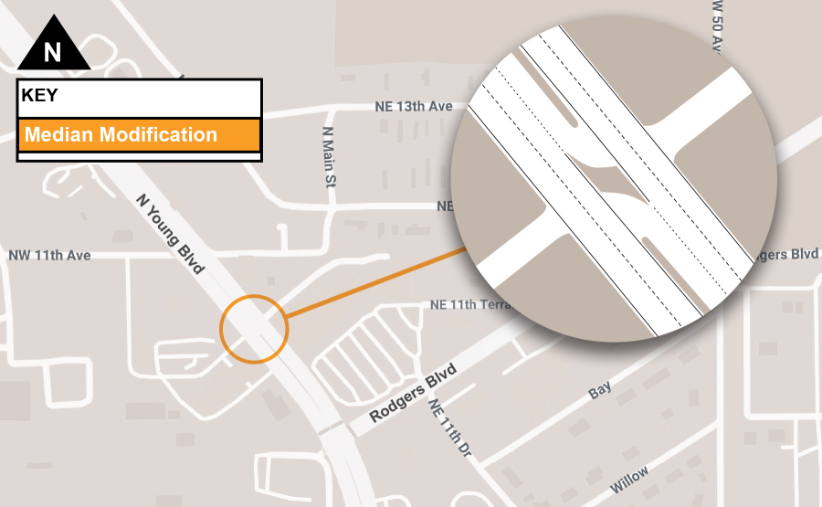 This project proposes median N. Young Boulevard (U.S. 19) in Levy County. Bohler Engineering FL, LLC, has requested a permit to develop a facility located at the northeast corner of E. Roberts Boulevard and N. Young Boulevard in Chiefland, Florida, 32626.